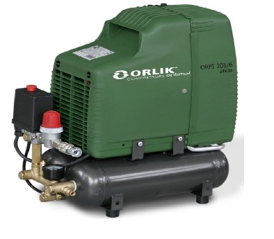 Kompresor ORLIK optimal vhodný pro použití v domácích dílnách a menších provozech, kde není potřeba trvalé dodávky stlačeného vzduchu.Lehce přenosný, váha 16 kg, nádoba 6 litrů, 230 V, 1,5 kW.